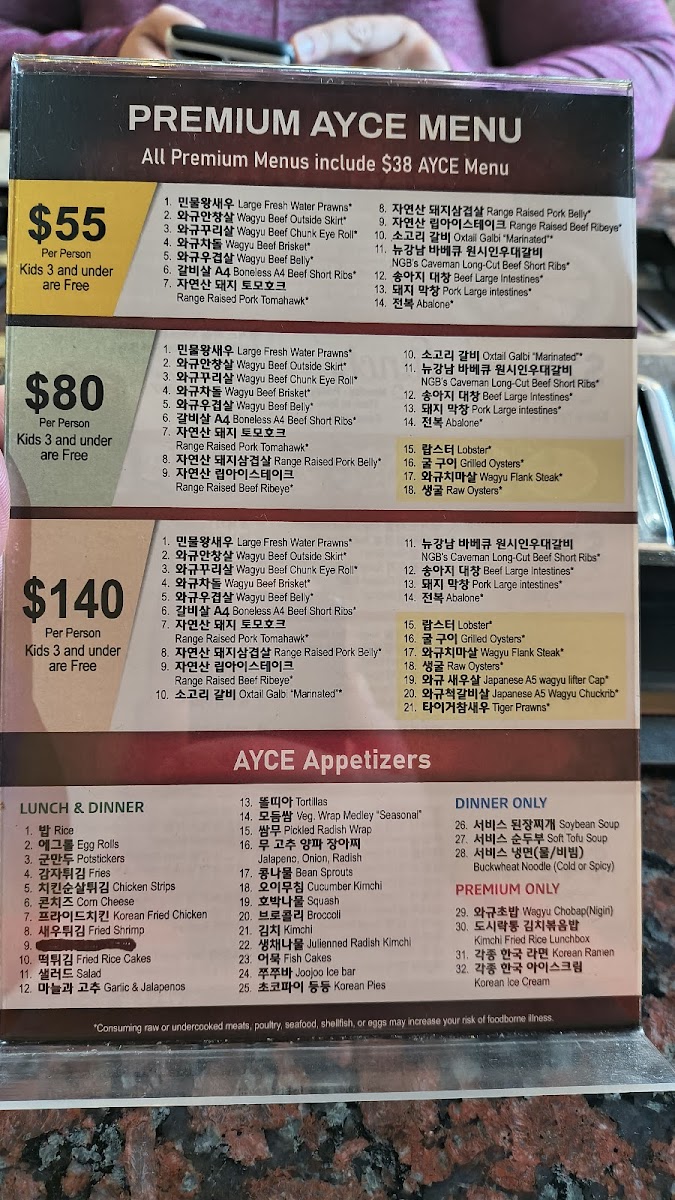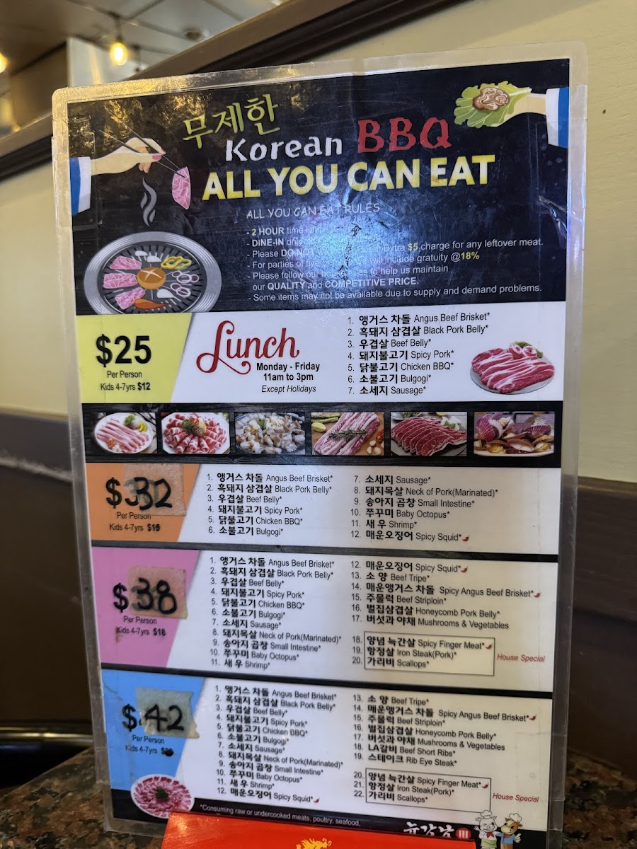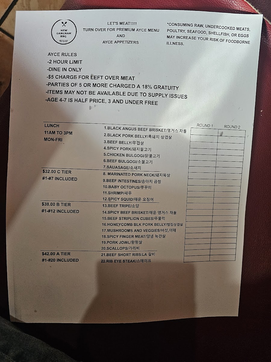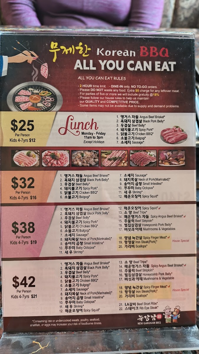 Doenjang-seasoned stew made with beef broth, beef, various seafood, and squash. The broth is thick and flavorful and good for mixing with rice.